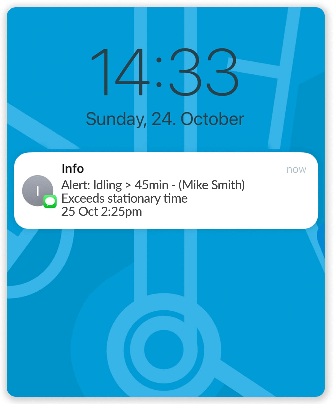 Alerts concerning your field staff can be customized and sent directly to your Android or iOS device as an SMS or Email.