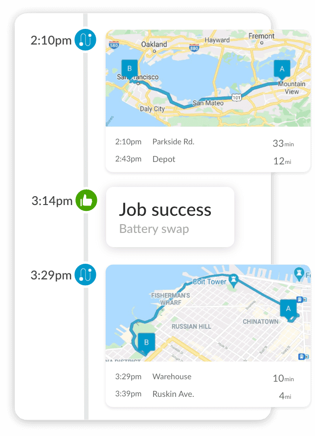Create Places for all your customers you frequently visit. You’ll get notified on arrival and on-site time will be recorded automatically. You can also create polygonal Zones for geofencing, alerting and customized routing capabilities.